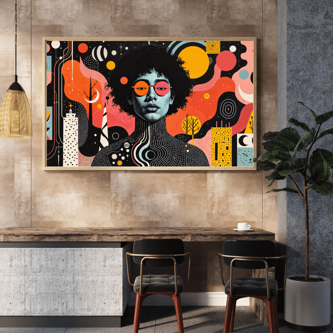 Perfect for lovers of modern art, abstract expression, and cosmic aesthetics. This piece will bring a striking focal point to any space, sparking inspiration and curiosity.