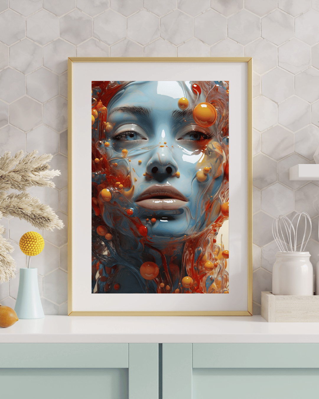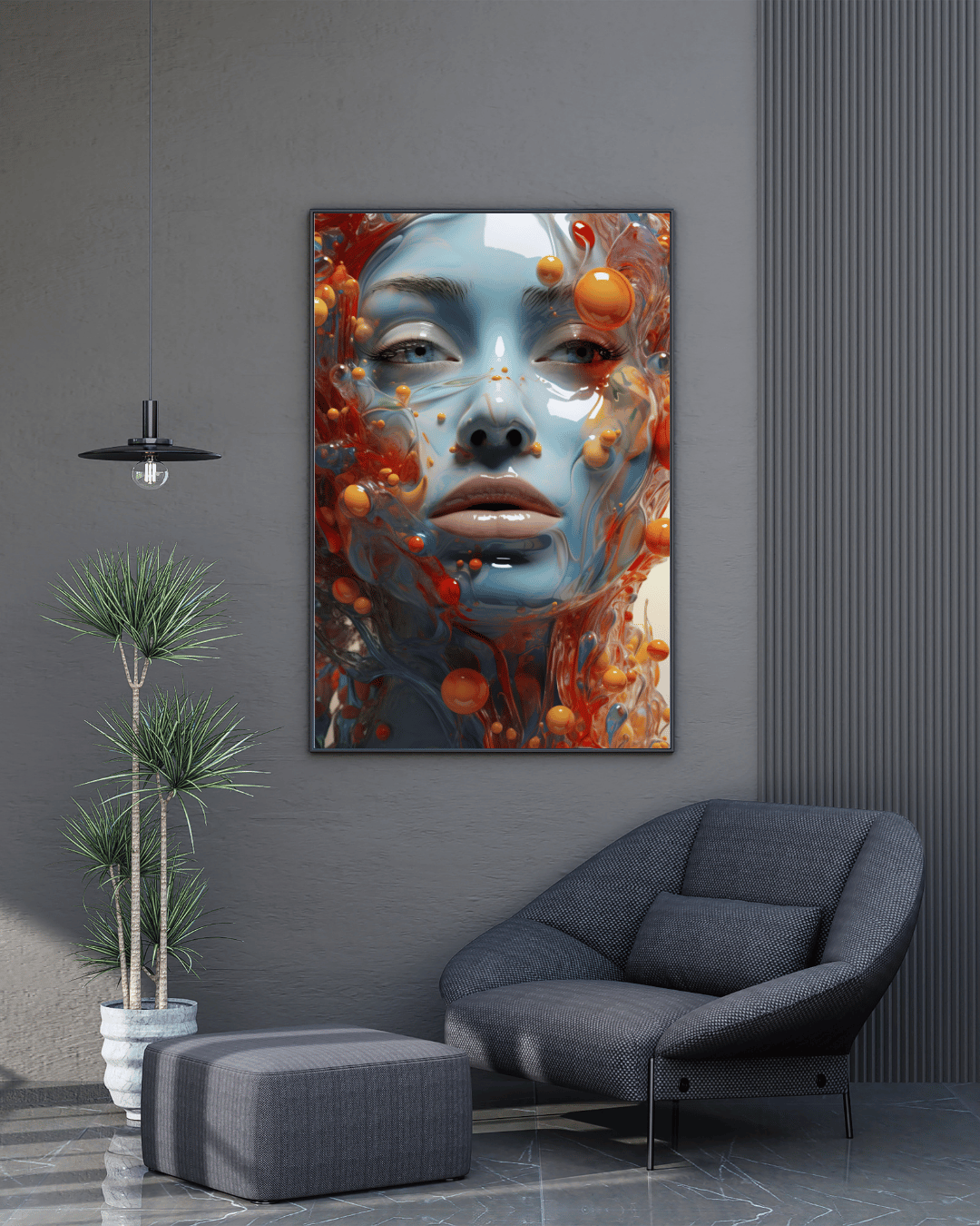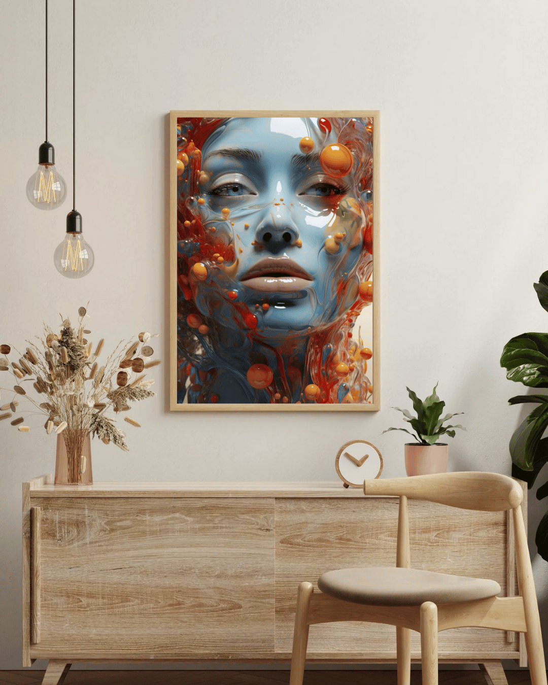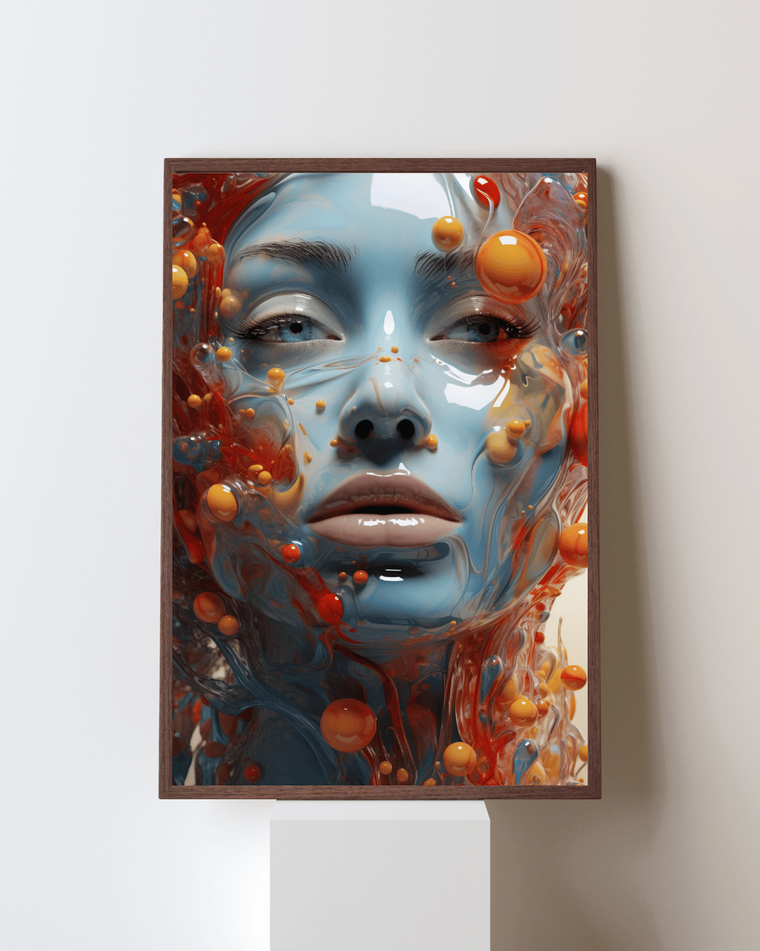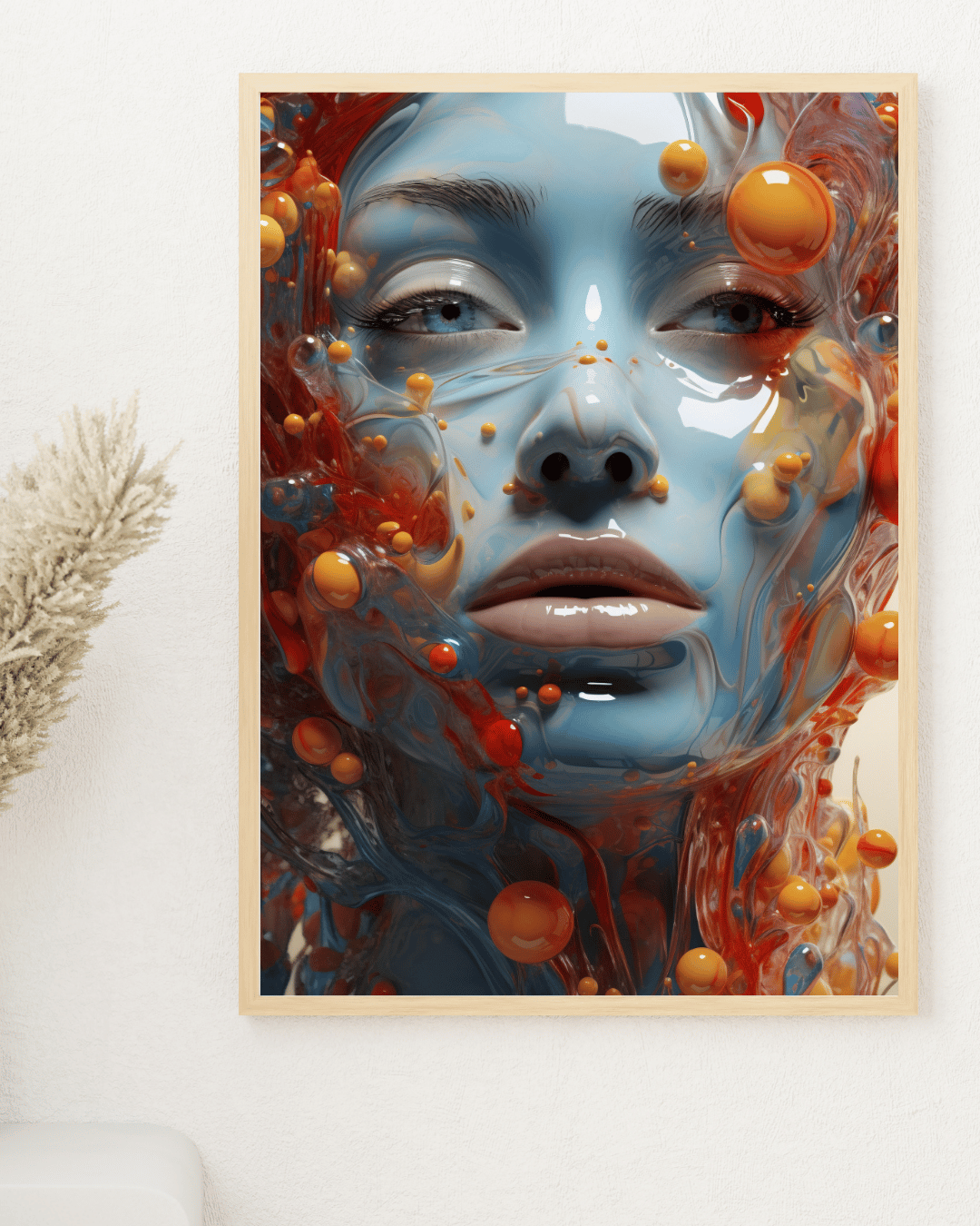 This high-resolution digital artwork features a futuristic face blending realism and abstraction, with translucent details and vibrant colors full of life. The design combines artistic beauty and innovation, making it ideal for your creative and design projects.
